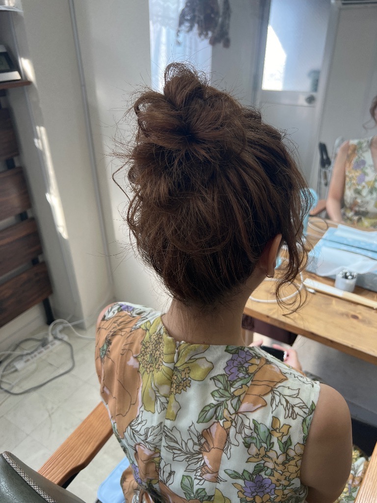 全体を波ウェーブにして作るお団子ヘアは、軽やかな印象を与えます✨✨髪の量が多い方でも、可能なスタイルなので、重ためな印象を無くしたい方にオススメです!✨