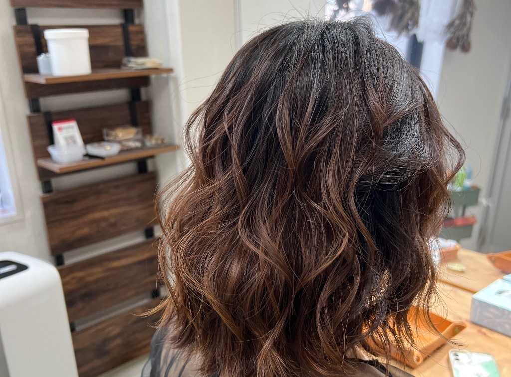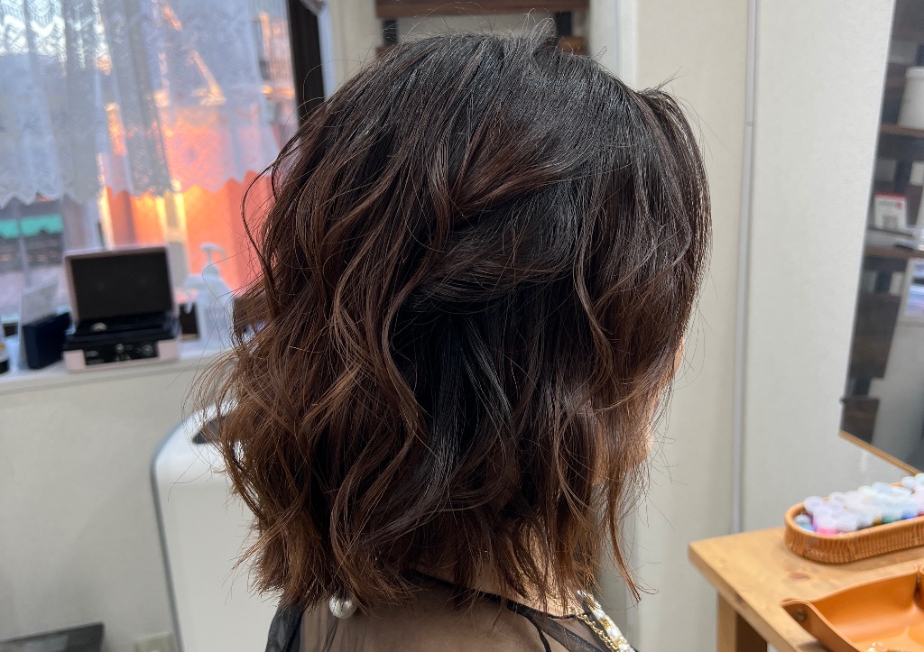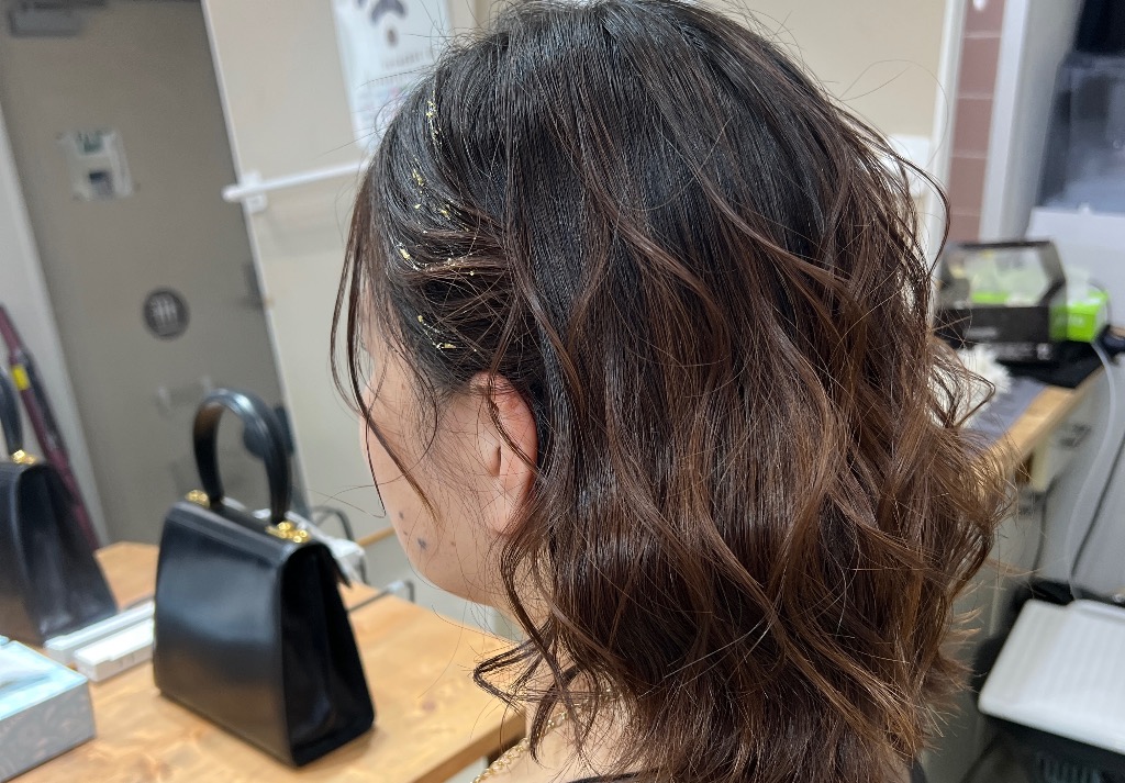 自然な仕上がりのご要望を承り、ホットカーラーのカール感を使い仕上げました。上品で、フワッと柔らかい仕上がりにしたい時、ホットカーラーは最適です♪