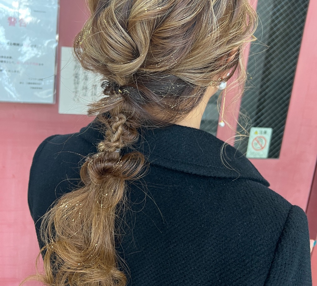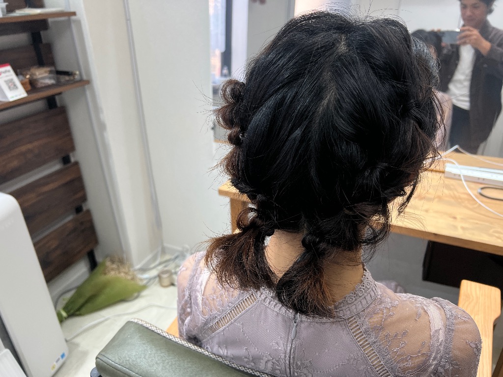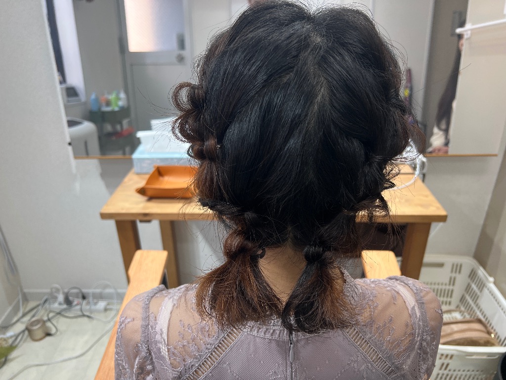 ボブショートの変則ツインテール♪今まではボブの方はハーフアップの定番スタイルに偏ってましたが、最近は技術力も上がり、アップスタイルや、編み下ろしスタイル、お団子、今回の様なツインテールなどバリエーションが増えてきています!当店も時代の流れに合わせたスタイルをご提供できる様日々奮闘してます!!是非、ご相談下さい♪