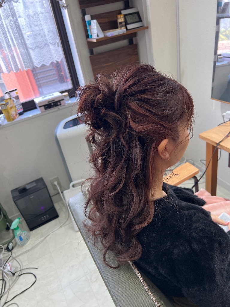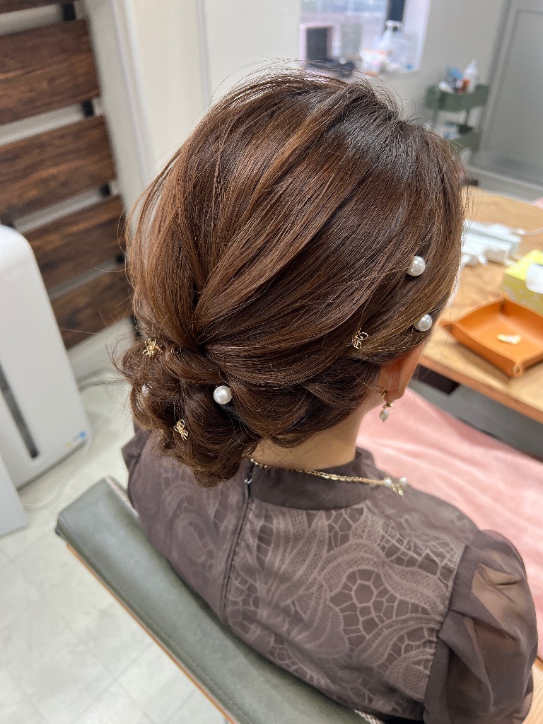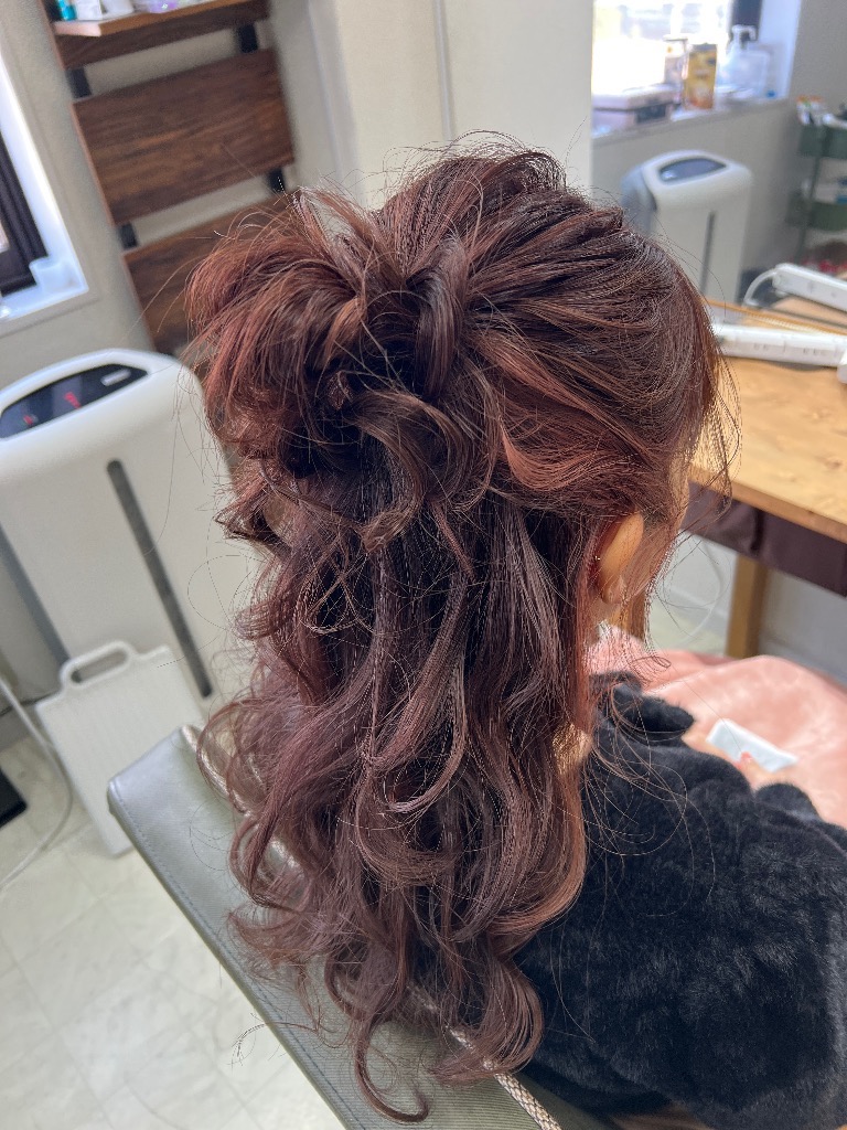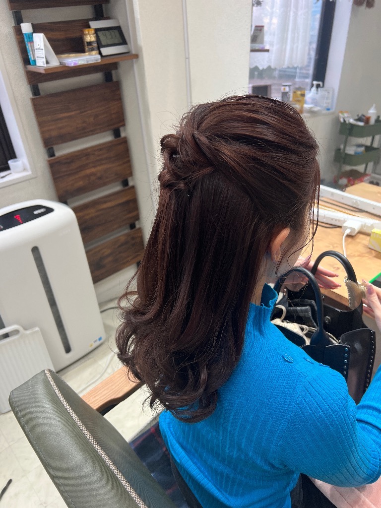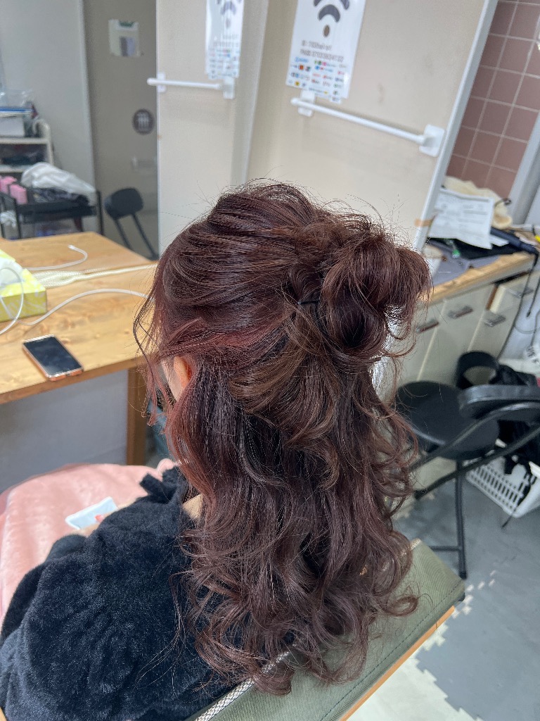 華やかなハーフアップ✨✨25ミリと19ミリのコテを使って作りました♪髪の毛の中側がボリュームダウンの為に、結構すいてあったので、普通のコテ巻きだとスカスカになりがちになります🤔こういう時は波ウェーブがオススメですね!ボリュームが欲しいところの毛束を全部波ウェーブにして、全体のバランスを整えられますので😉お客様ご持参のアクセサリーも付けて華やかハーフアップの出来上がり💞都島区ヘアセットサロンをお探しの方は、是非当店へ👍