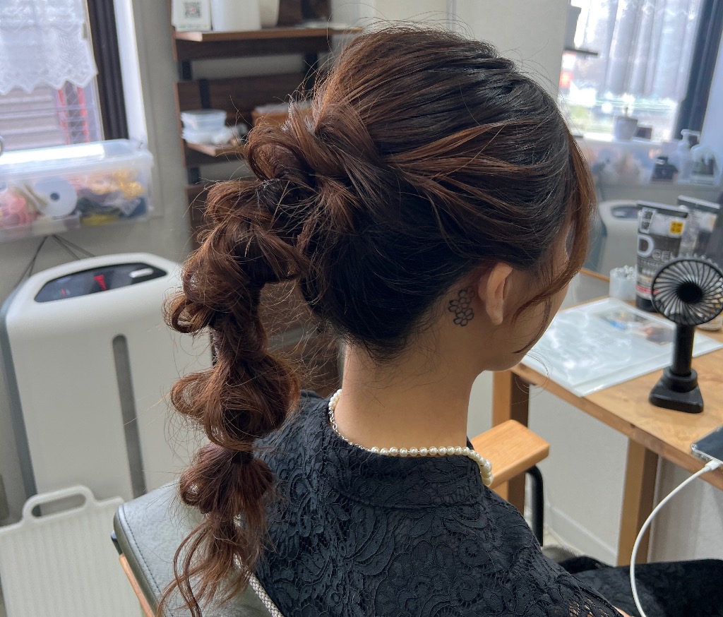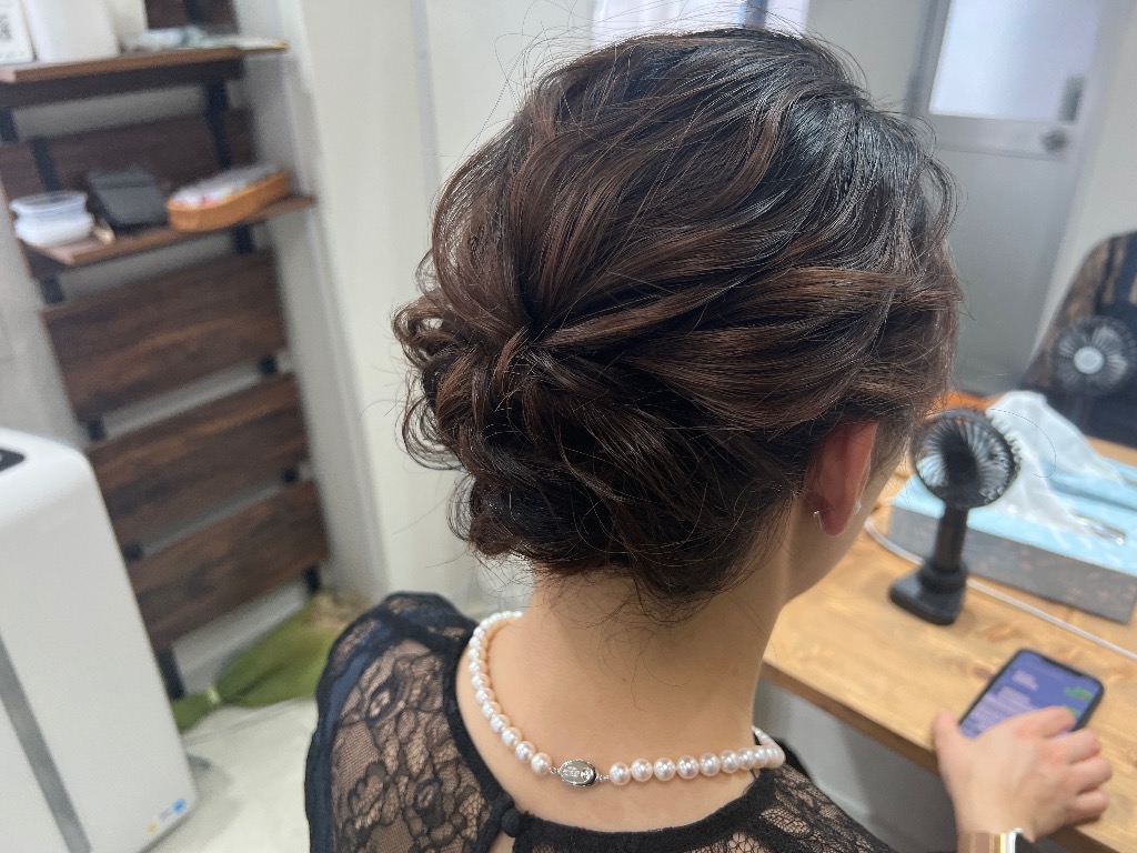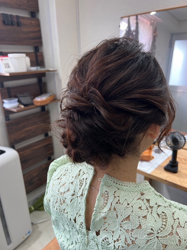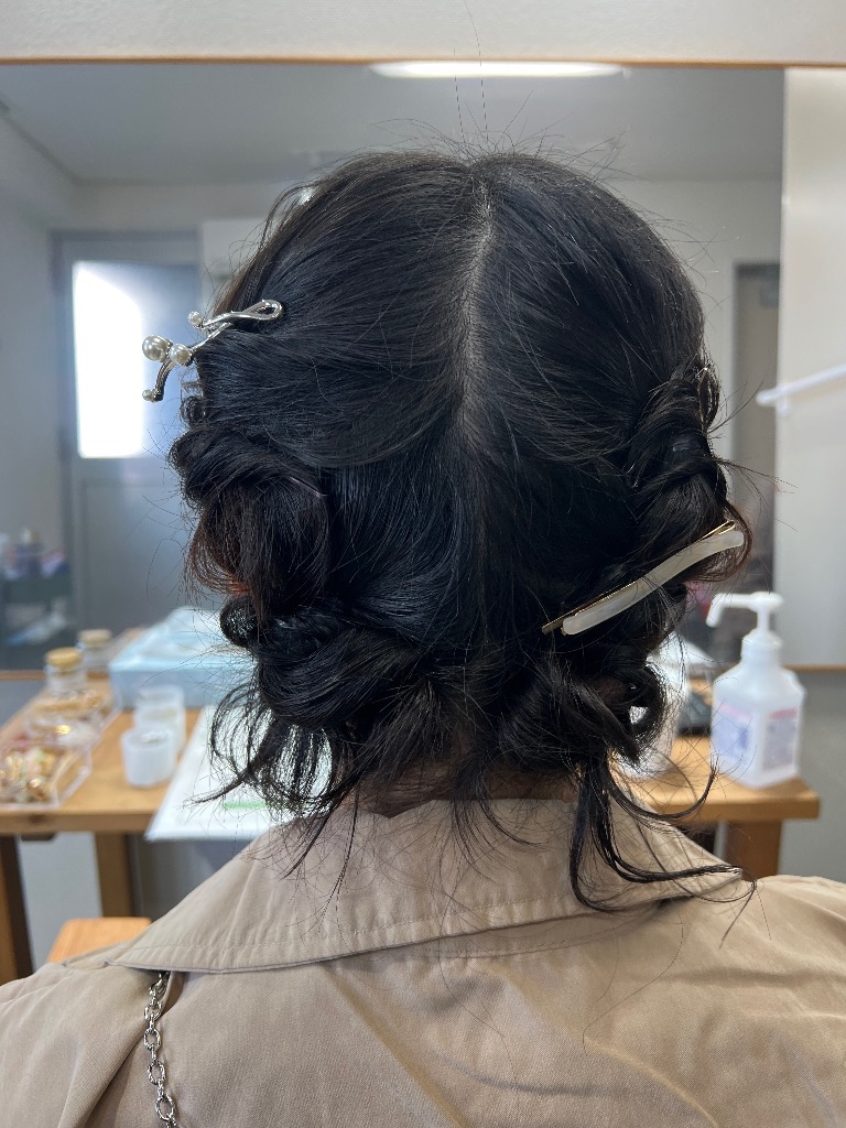 ミディアムヘアの後れ毛無し、スッキリアップ