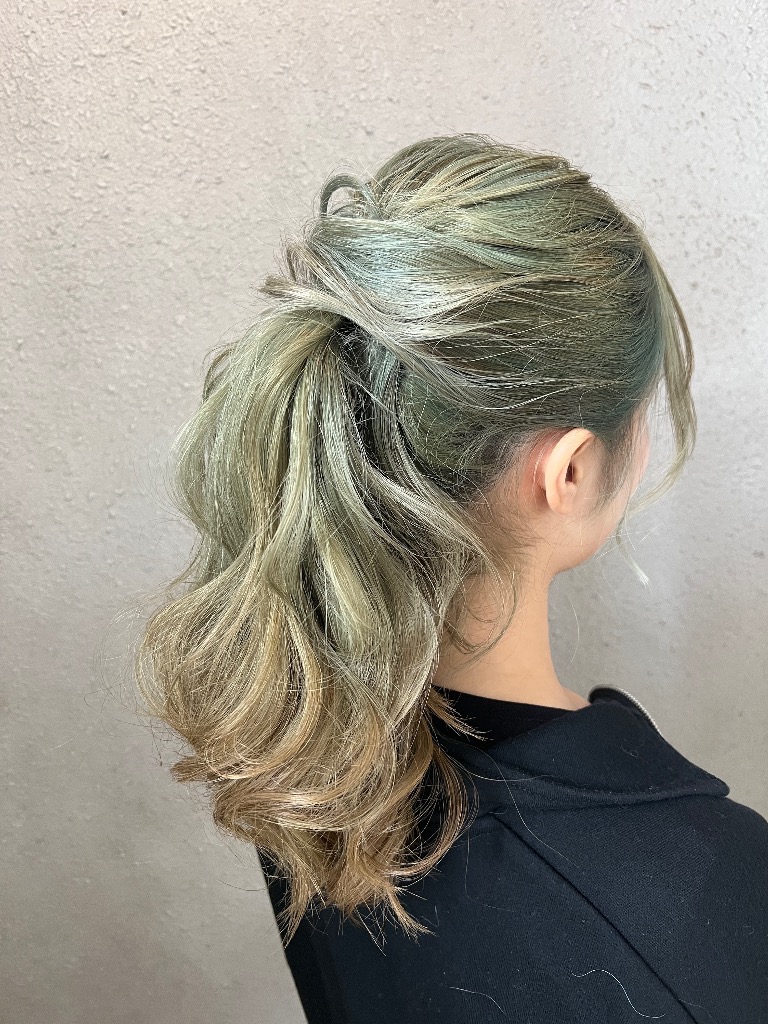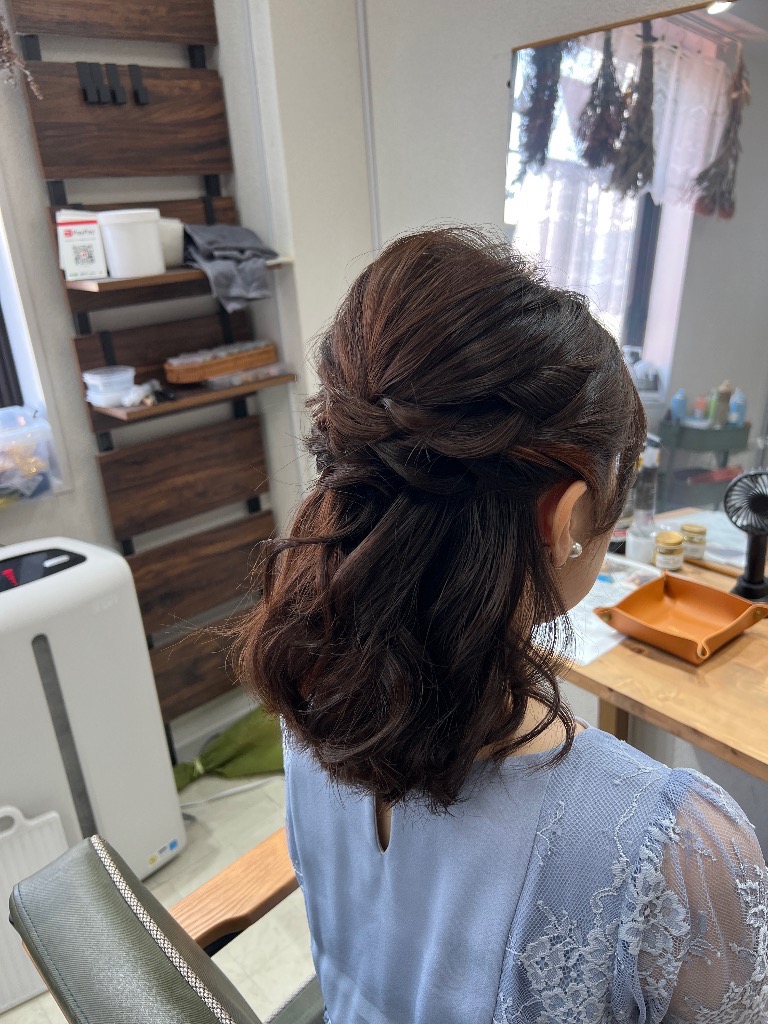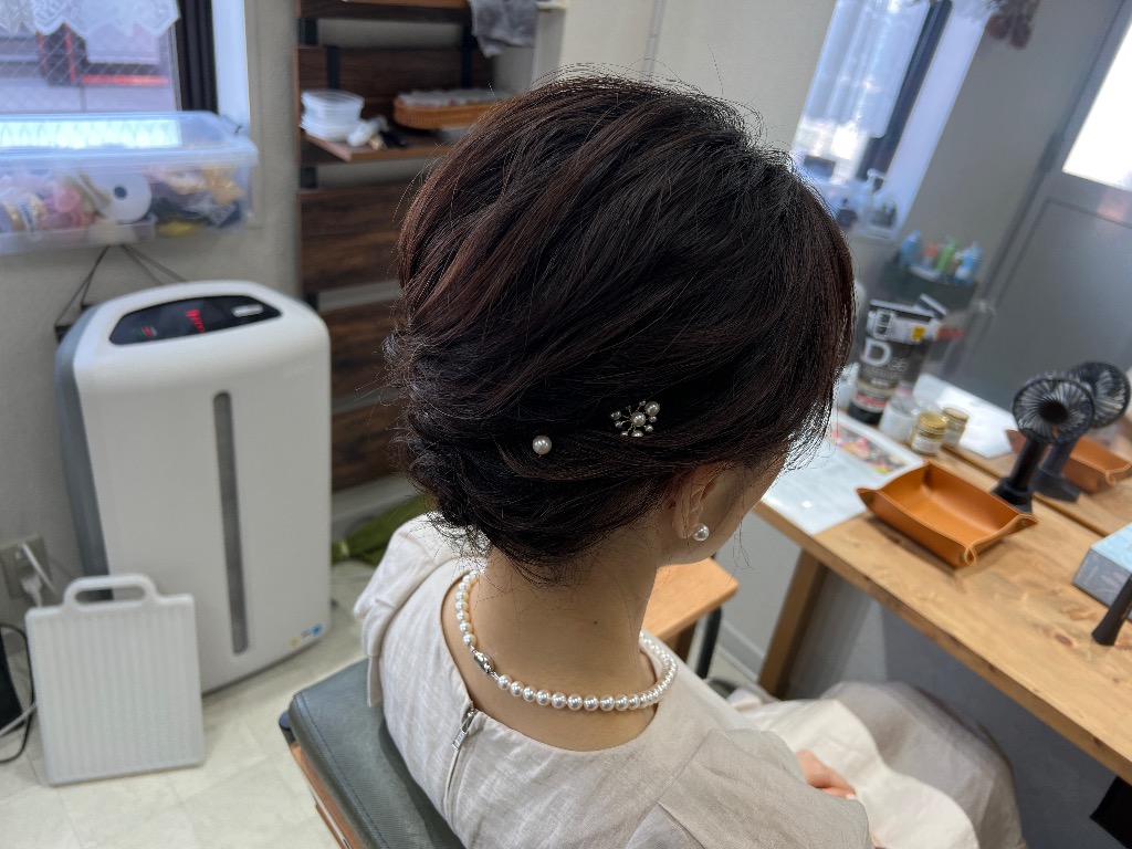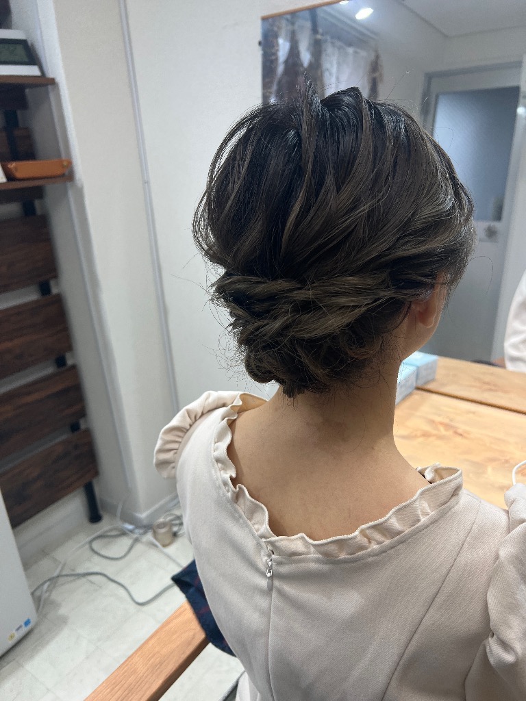 ミディアムヘアの後れ毛無し、スッキリアップ