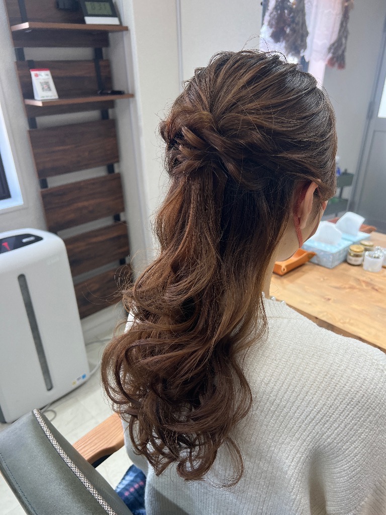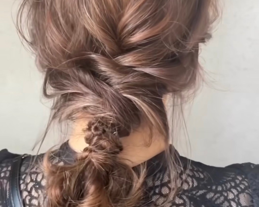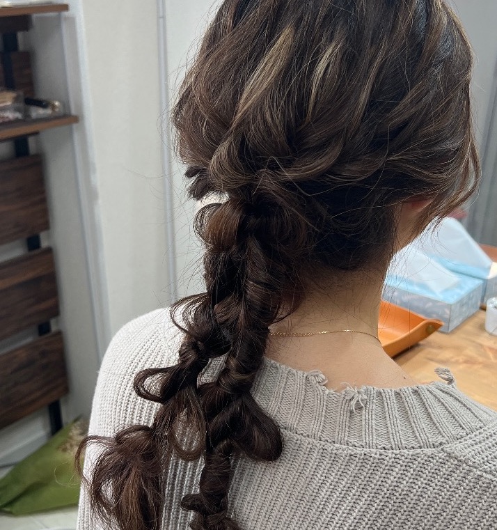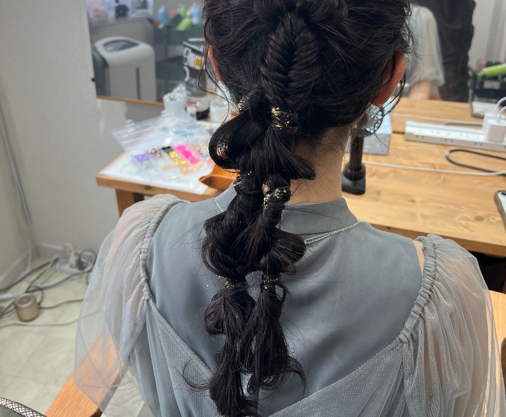 フィッシュボーンと玉ねぎヘアのツインアレンジ
